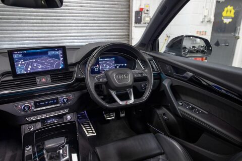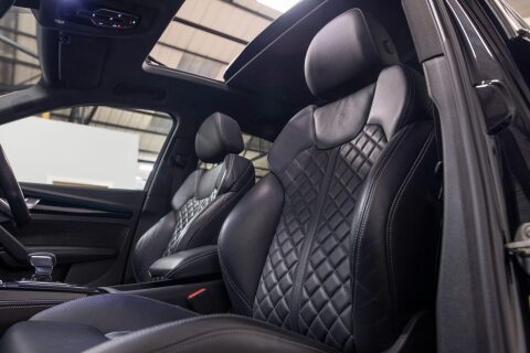 A STUNNING EXAMPLE FINISHED IN MYTHOS BLACK METALLIC | INTERIOR IN FINE NAPPA LEATHER BLACK WITH GREY CROSS STITCHED ON SEATS | JUST HAD FULL MACHINE POLISH | FULL SERVICE HISTORY BOTH AUDI & INDEPENDENT | PANORAMIC SUNROOF | COMFORT AND SOUND PACK | BANG & OLUFSEN SOUND SYSTEM | 360 CAMERAS | EXTENDED LED INTERIOR LIGHTING | CONVENIENCE KEY | 20" V SPOKE DIAMOND CUT BLACK ALLOY WHEELS WITH RED AUDI LOGO | 4 MATCHING PIRELLI TYRES | NEW BRAKE PADS | RED BRAKE CALIPERS | BLACK ROOF RAILS | FLAT BOTTOM STEERING WHEEL 3 SPOKE MULTI FUNCTION | ADAPTIVE CRUISE CONTROL | PIANO BLACK INLAYS | TECHNOLOGY PACK WITH VIRTUAL DASH | FOLDING MIRRORS | BLACK PACK & PRIVACY GLASS.
