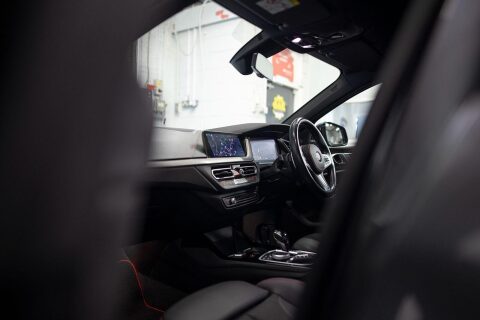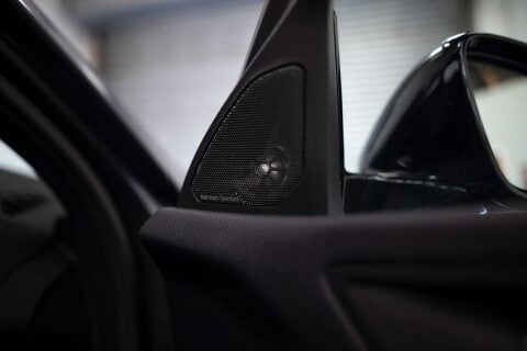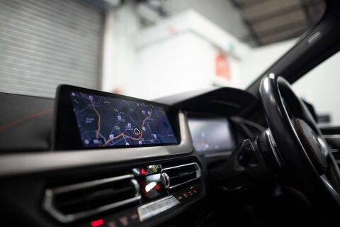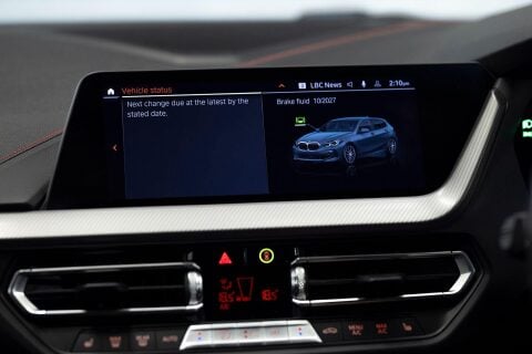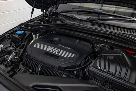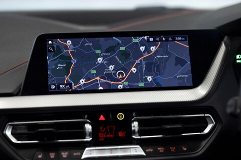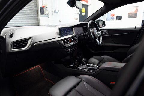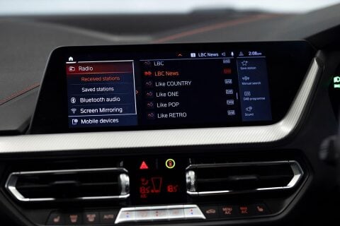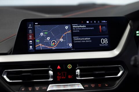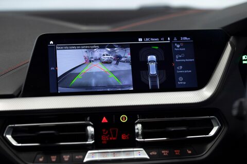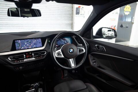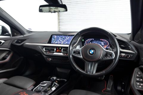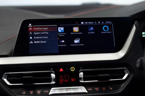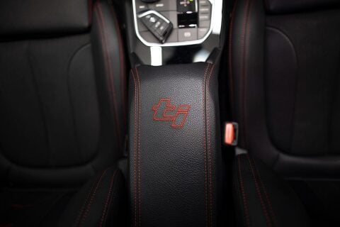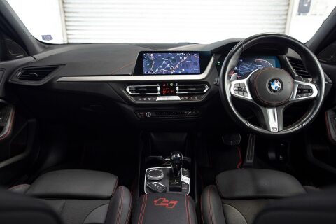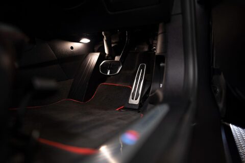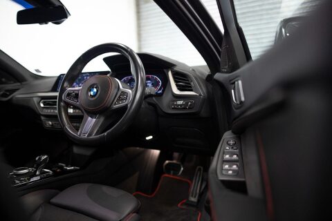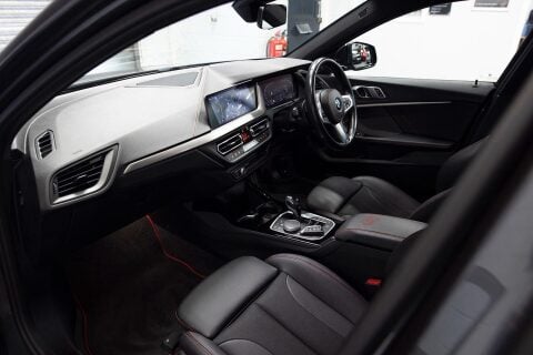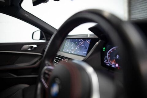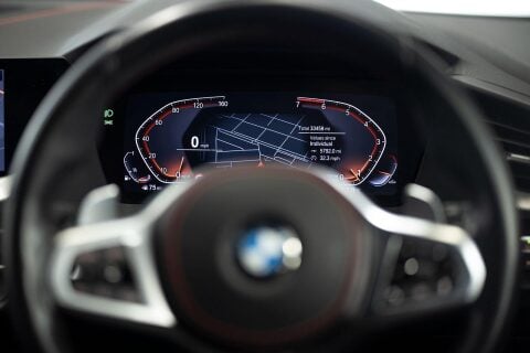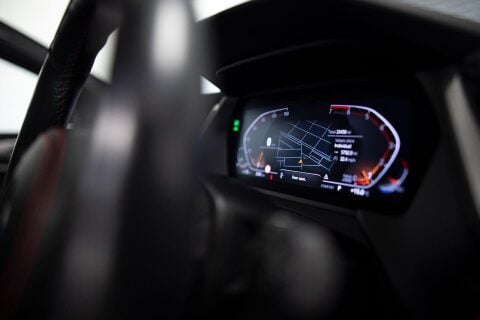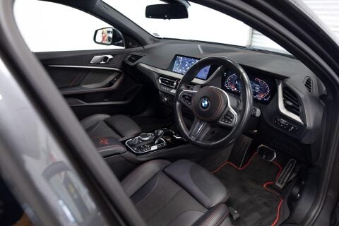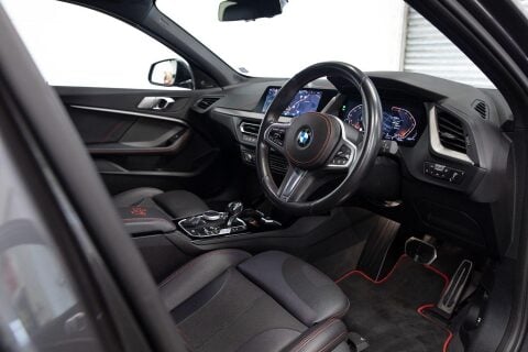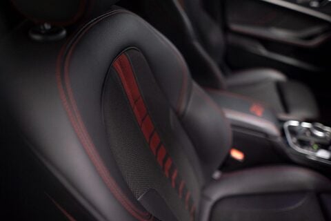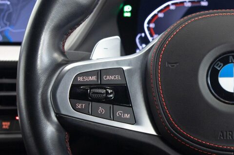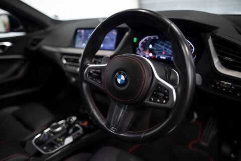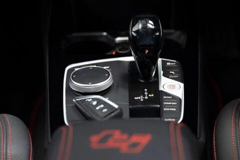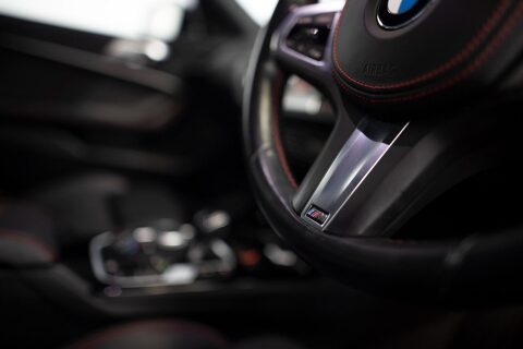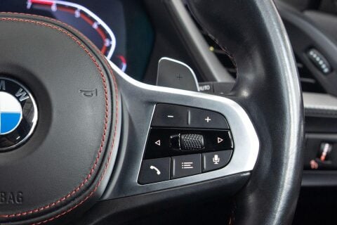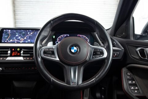 M Sport Multi-Function Leather Steering Wheel with Three-Spoke Design with Unique Red Stitch
